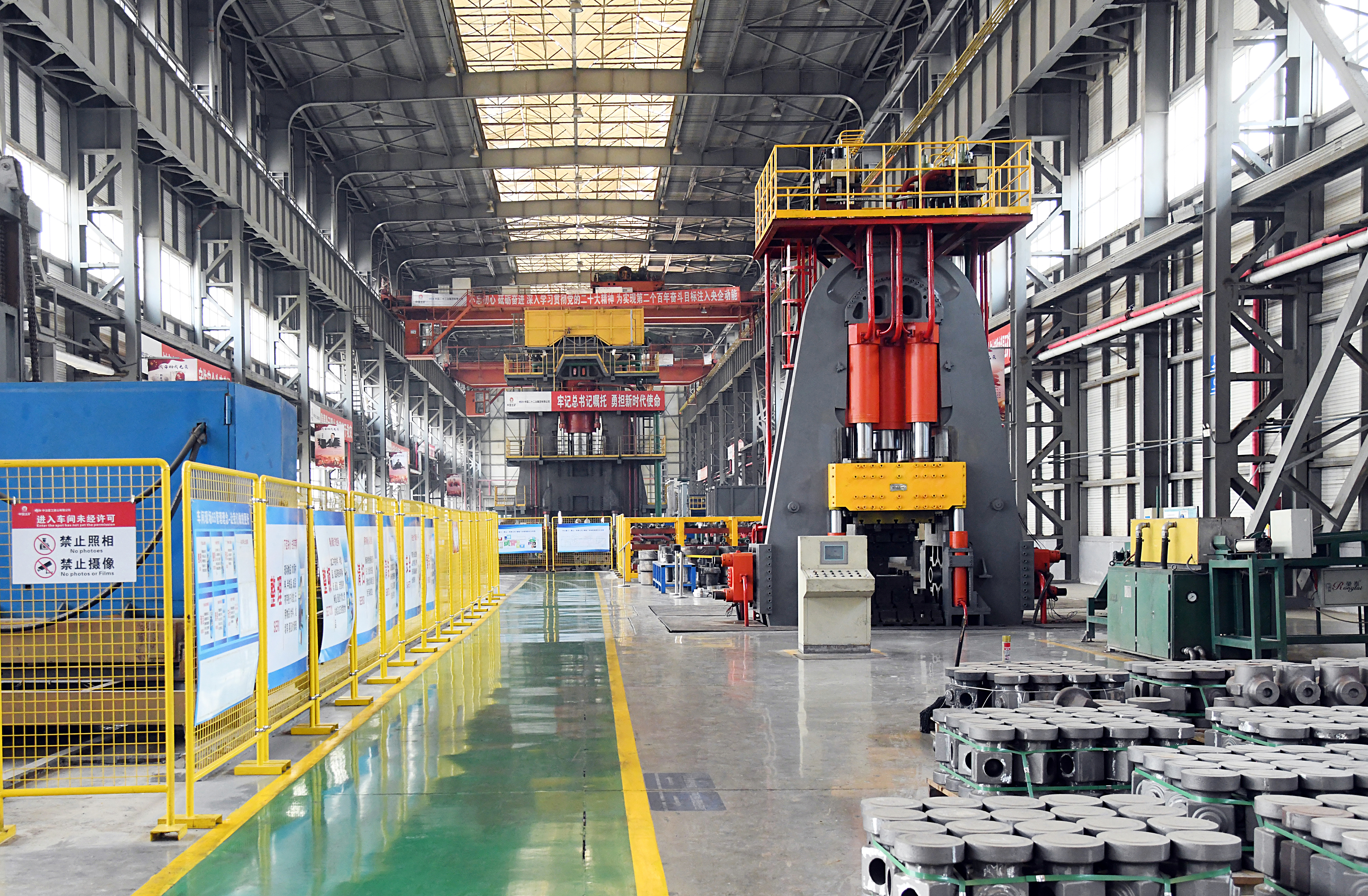 由中國二十二冶生產(chǎn)的重型壓機及產(chǎn)線擁有預(yù)應(yīng)力鋼絲纏繞、特重型設(shè)備原位安裝、厚板焊接等核心技術(shù),產(chǎn)品涵蓋(多向)模鍛液壓機、板片成型液壓機、換熱片壓機、海綿鈦壓機、特色中小型壓機等工藝生產(chǎn)線及配套設(shè)備。產(chǎn)品榮獲國家科學(xué)技術(shù)進步獎、國家優(yōu)質(zhì)工程獎、冶金科學(xué)技術(shù)獎、魯班獎等多項榮譽。